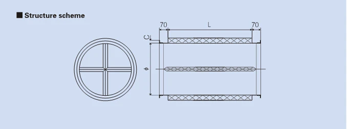 Pack centrifugal glass cotton inside the muffler and cover it with glass cloth and φ 4mm perforated plate.The keel is galvanized sheet. |